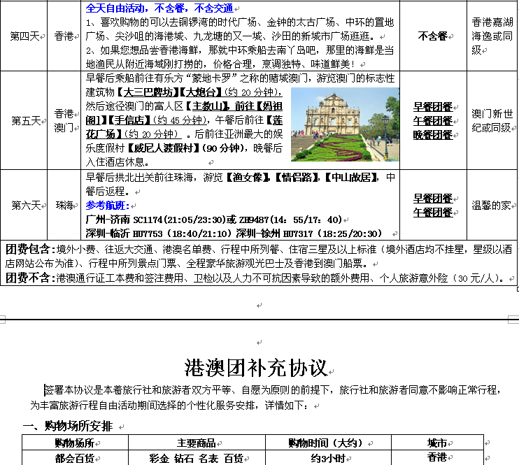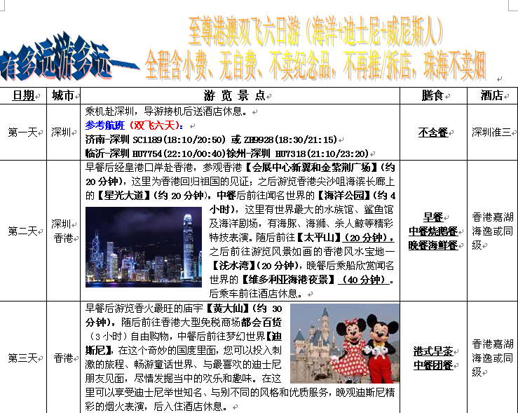 港澳至尊雙飛6日游(濟南、徐州、臨沂起止)