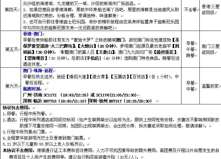 港澳常規(guī)定制雙飛6日游(濟(jì)南、徐州、臨沂起止)