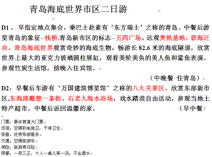 青島海底世界+市區(qū)2日游