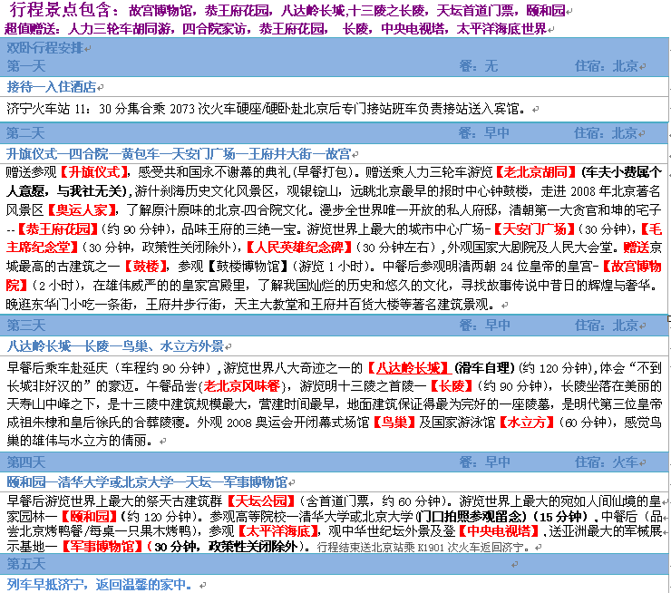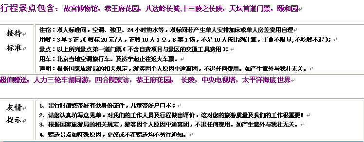 至尊:北京純玩雙臥5日游/單動(dòng)單臥5日游/單高單臥5日游/單飛單臥5日游(天天發(fā)) 2014-5-14 本文被閱讀 4555 次