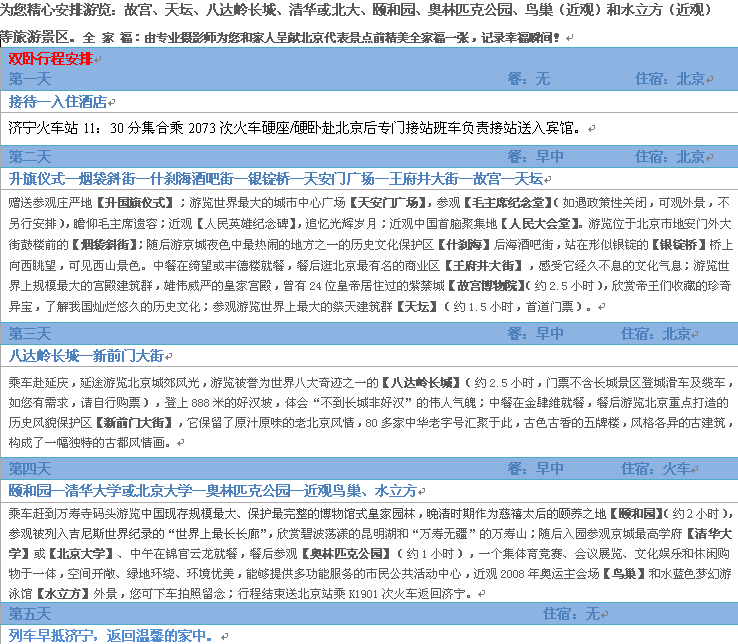 臻品:北京純玩雙臥5日游/單動單臥5日游/單高單臥5日游/單飛單臥5日游(天天發(fā))