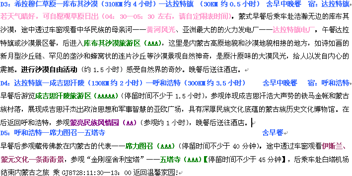 濟(jì)寧機(jī)場(chǎng)起止:希拉穆仁大草原、神奇庫(kù)布其沙漠、成吉思汗陵、塞外青城五日游(主推)(周一、三) 2014-5-31 本文被閱讀 4840 次