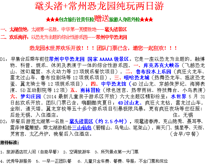 提示:報(bào)名選擇正規(guī)旅游合法資質(zhì)的旅行社,并簽訂全國(guó)統(tǒng)一電子旅游合同微信1:992345533微信2:15705475533 微信3:13792310010電話:2345566/2345544/2345599/2345533/2345511