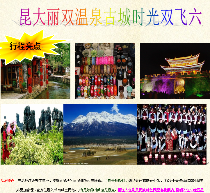 古城時(shí)光:昆明、大理、麗江雙飛6日游 特色雙溫泉 2014-7-19 本文被閱讀 3745 次