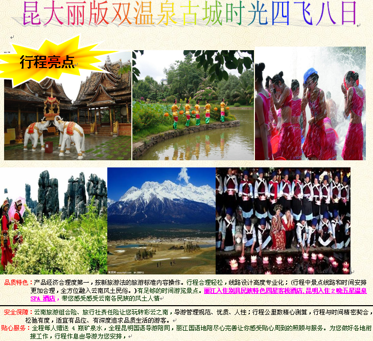 古城時(shí)光:昆明、大理、麗江、版納四飛8日游 特色雙溫泉 2014-7-19 本文被閱讀 3746 次
