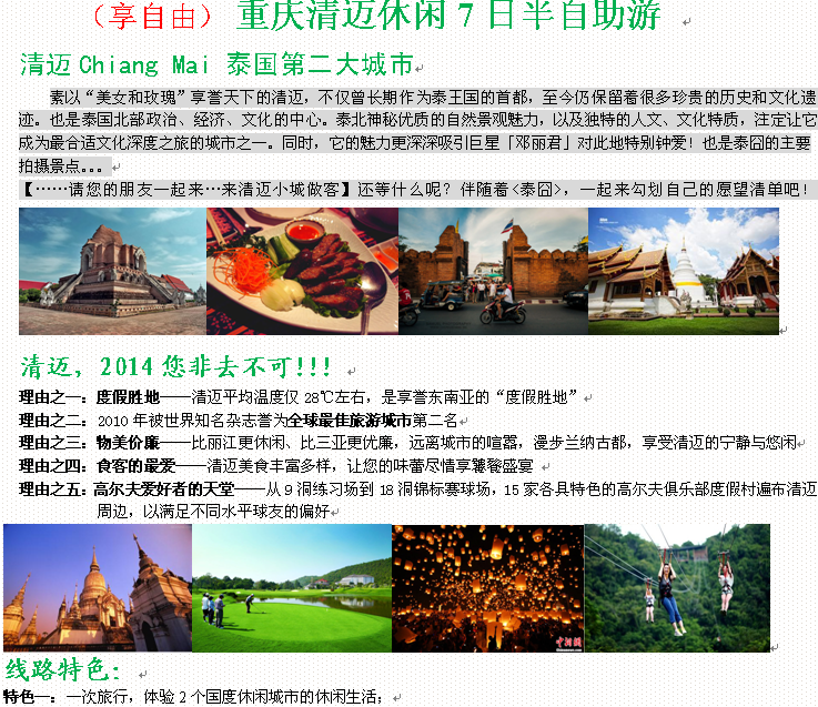 (享自由) 重慶清邁休閑7日半自助游 2014-8-29 本文被閱讀 4354 次