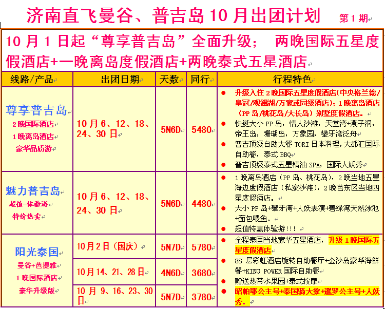 2014年-10月份泰國、普吉島計劃價格表 2014-9-9 本文被閱讀 5529 次