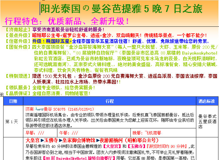 陽(yáng)光泰國(guó)の曼谷芭提雅5晚7日之旅