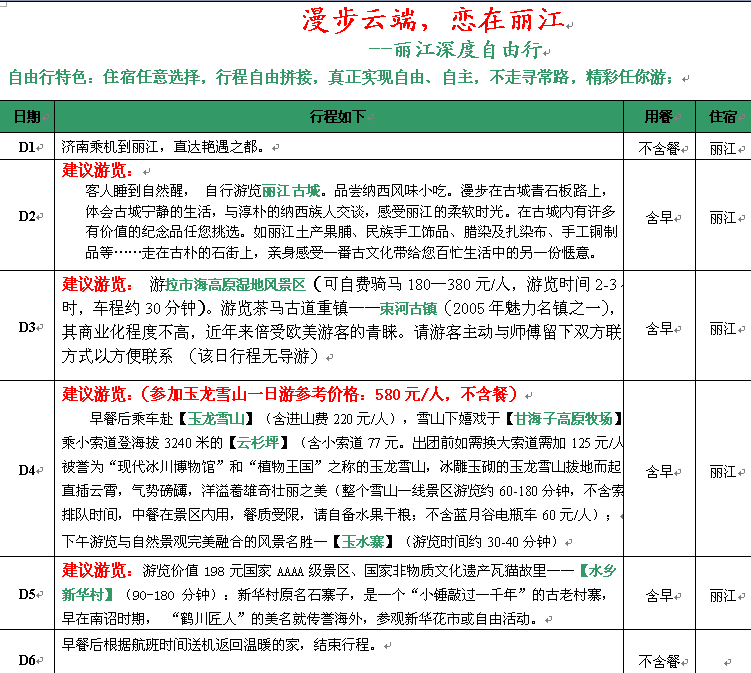 7、漫步云端,戀在麗江--麗江深度自由行 自由行特色:住宿任意選擇,行程自由拼接,真正實現(xiàn)自由、自主,不走尋常路,精彩任你游;每周二四六