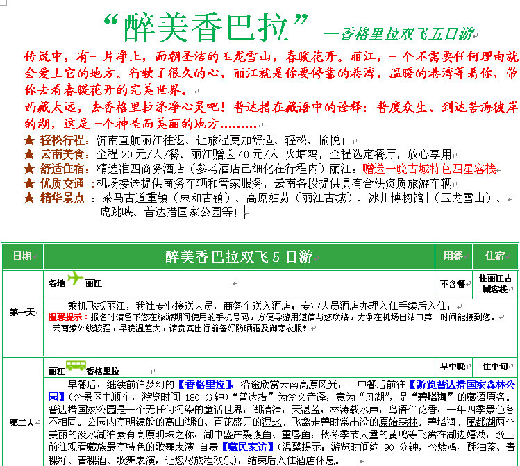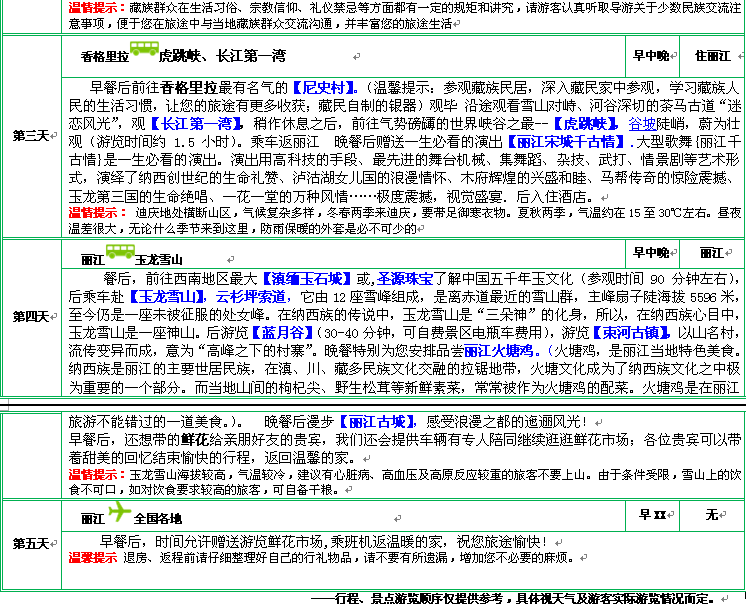 1.“醉美香巴拉”麗江+香格里拉雙飛五/六天 每周二 四 六 26-59歲 8人內