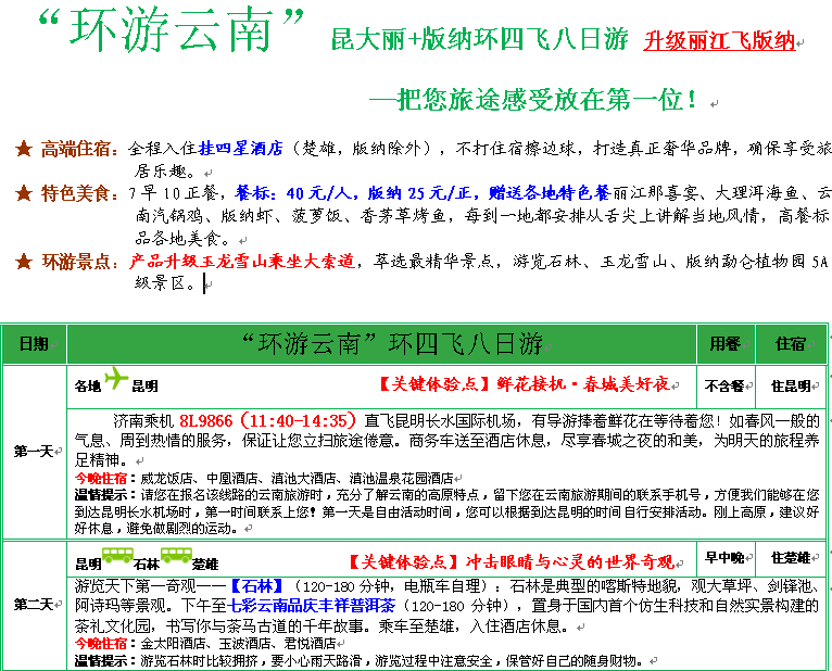 4.“環(huán)游云南”掛四昆大麗+版納環(huán)四飛八日游 天天發(fā)團(tuán) 26-59歲 8人內(nèi)