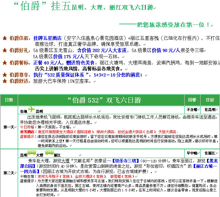 “伯爵”掛五昆明、大理、麗江雙飛六日游