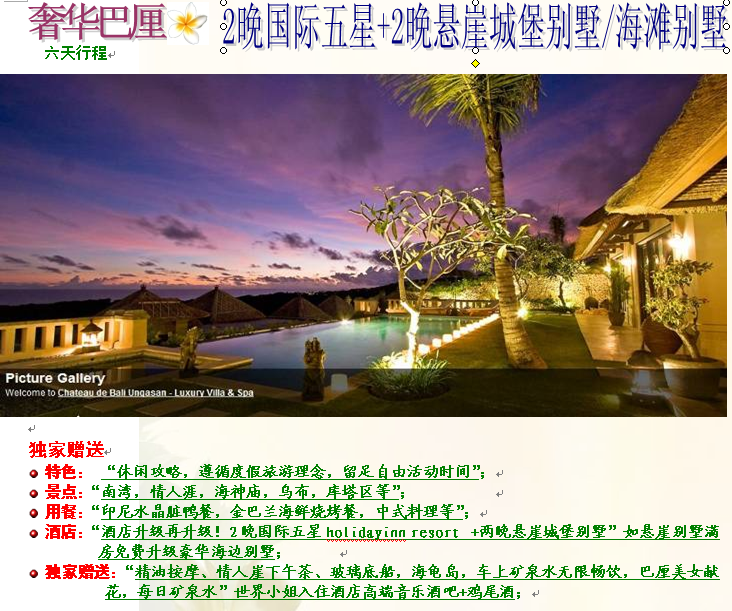 奢華 巴厘島 2晚國際五星+2晚懸崖城堡別墅/海灘別墅 2014-11-27 本文被閱讀 4225 次