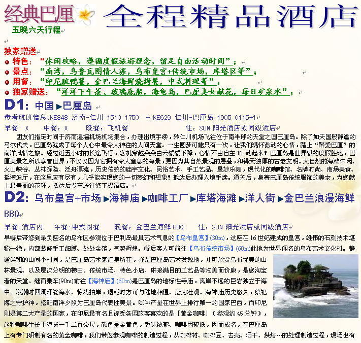 經(jīng)典 巴厘島 全程精品酒店 2014-11-27 本文被閱讀 3890 次