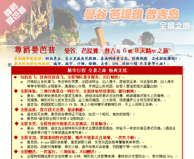 尊爵曼芭普 曼谷、芭提雅、普吉島6晚8天精華之旅 2014-11-29 本文被閱讀 4447 次