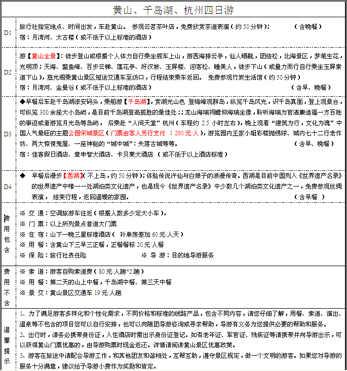 8線(xiàn)黃山、千島湖、黃山四日游