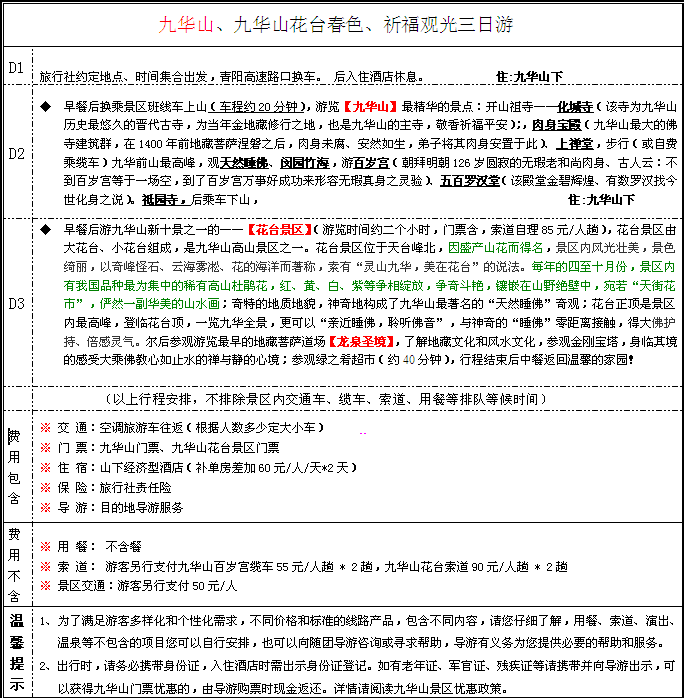 7線祈福線:清源山、九華山祈福三日游