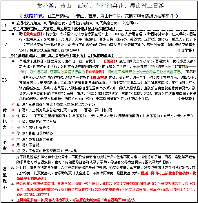 4線賞花線:黃山 、 西遞、盧村油菜花、屏山村三日游