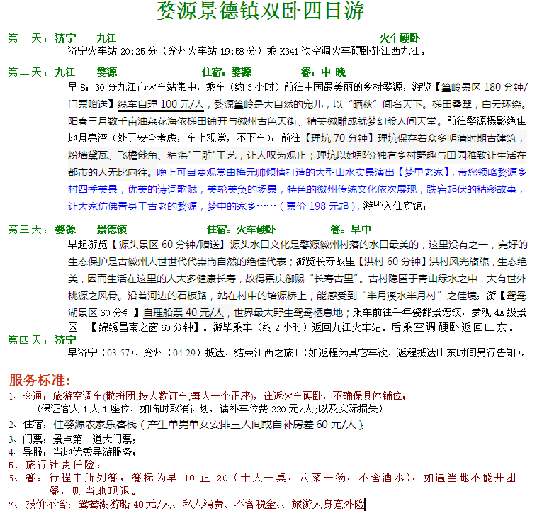 C4:婺源景德鎮(zhèn)雙臥四日游(特價,每周五發(fā)團(tuán))1000元