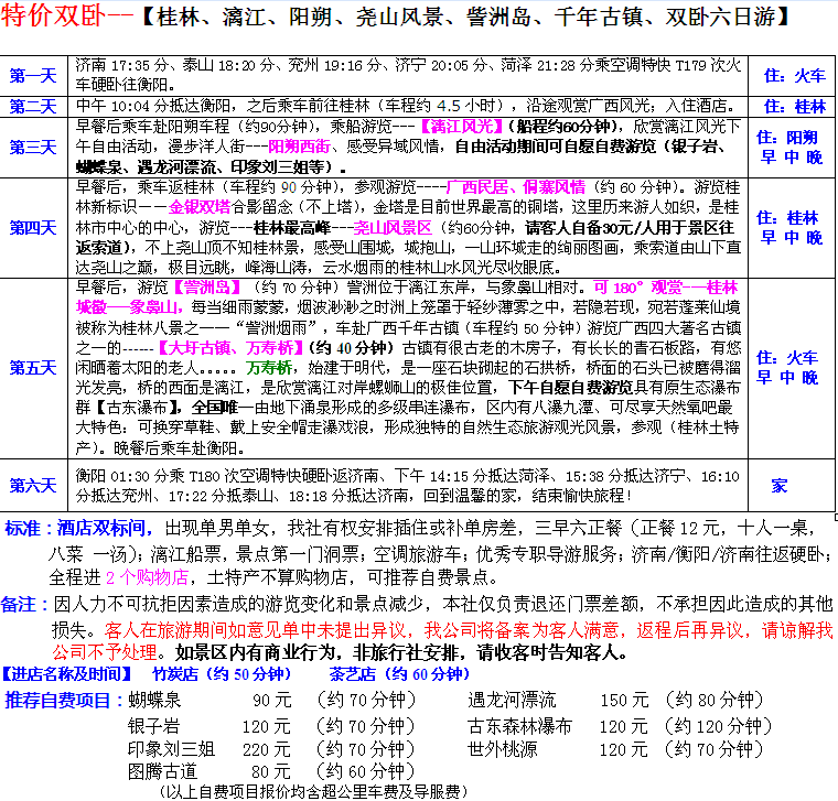 特價(jià)雙臥【桂林、漓江、陽朔、堯山風(fēng)景、訾洲島、千年古鎮(zhèn)、雙臥六日游】 2015-3-1 本文被閱讀 3535 次
