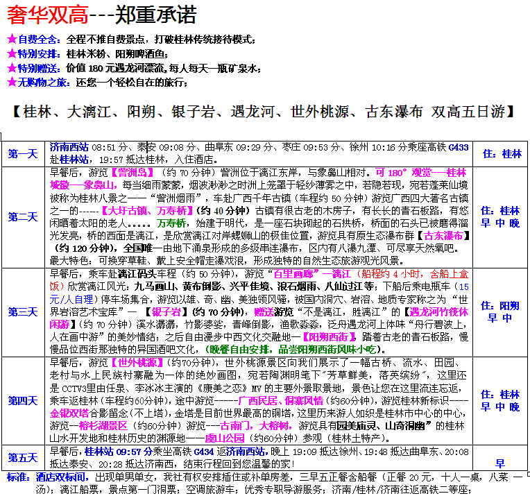 奢華雙高【桂林、大漓江、陽(yáng)朔、銀子巖、遇龍河、世外桃源、古東瀑布 雙高五日游、天天發(fā)】 2015-3-1 本文被閱讀 3890 次