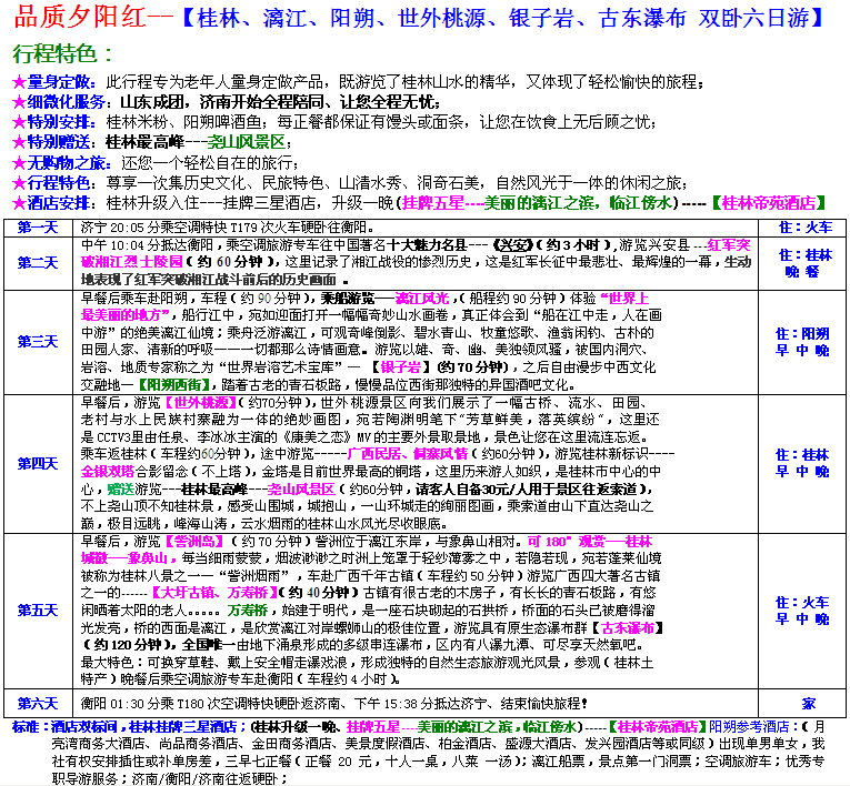 品質(zhì)夕陽紅雙臥【桂林、漓江、陽朔、 世外桃源、銀子巖、古東瀑布 雙臥六日游】 2015-3-2 本文被閱讀 3455 次