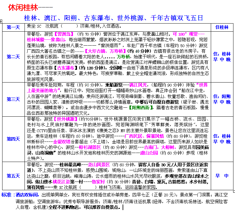 休閑桂林【桂林、漓江、陽朔、古東瀑布、世外桃源、千年古鎮(zhèn)雙飛五日】
