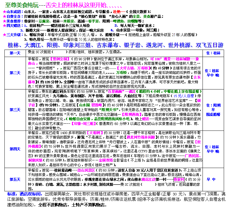 至尊美食純玩【桂林大漓江陽朔、印象劉三姐、古東瀑布、銀子巖、遇龍河、世外桃源、雙飛五日游】