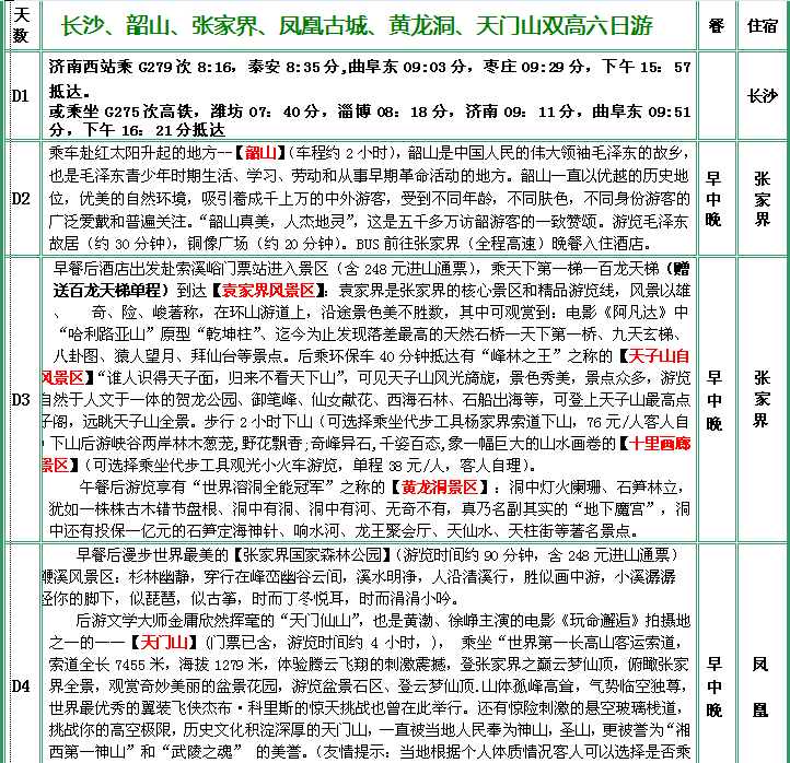 “天門傳奇” 長沙、韶山、張家界、天子山、金鞭溪、袁家界(含電梯)、鳳凰古城、黃龍洞、天門山(含纜車)(四星,白天無自費(fèi))雙高六日 2015-3-5 本文被閱讀 3618 次