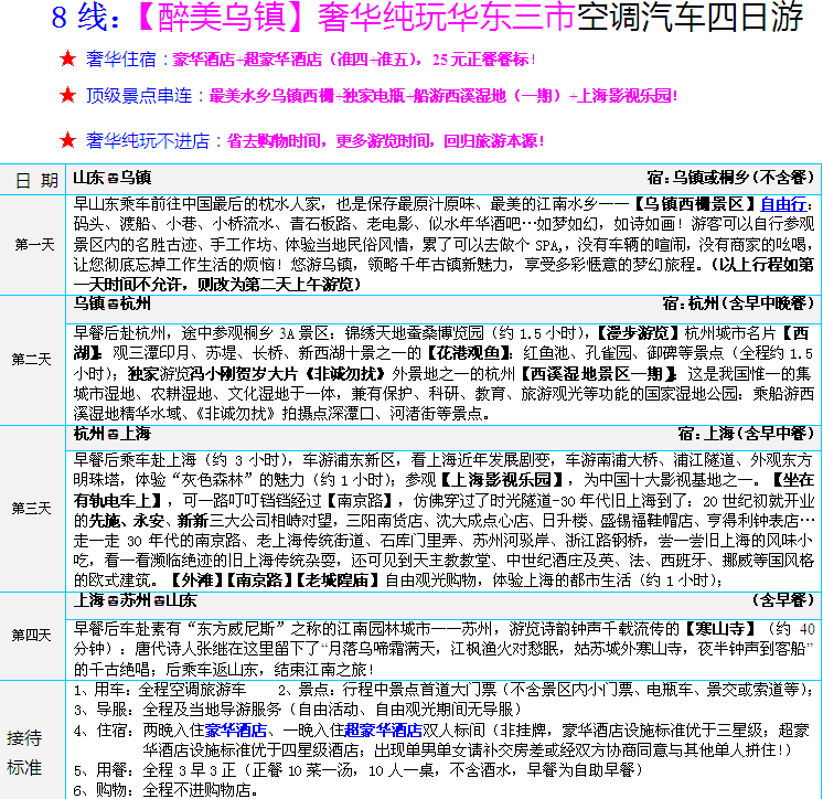 8線“醉美烏鎮(zhèn)”蘇滬杭純玩四日(四星+五星,一晚夜宿烏鎮(zhèn),船游西溪濕地)