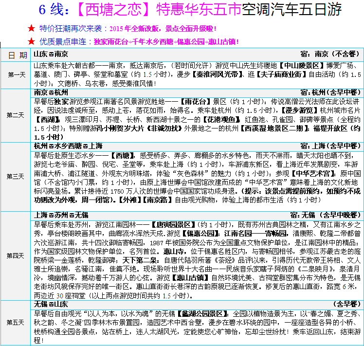 6線“西塘之戀”華東五市特惠五日(千年水鄉(xiāng)西塘+錫惠公園+惠山古鎮(zhèn)) 2015-3-7 本文被閱讀 3910 次