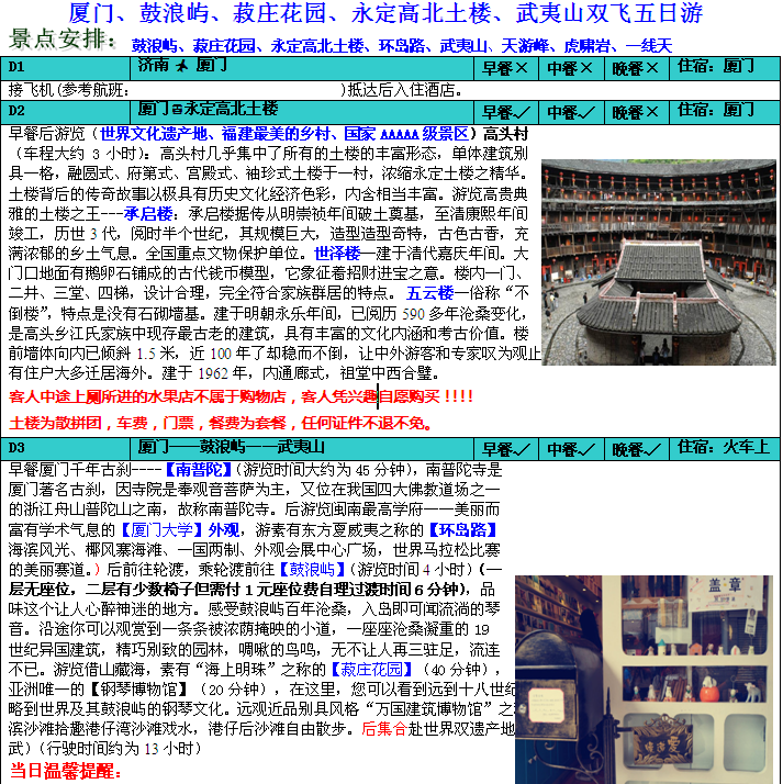 廈門、鼓浪嶼、菽莊花園、永定高北土樓、武夷山雙飛五日游【濟(jì)進(jìn)廈,武回青】