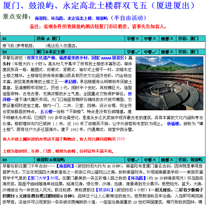 廈門、鼓浪嶼、土樓、雙飛五日游(半自由行,住宿鼓浪嶼家庭旅館)