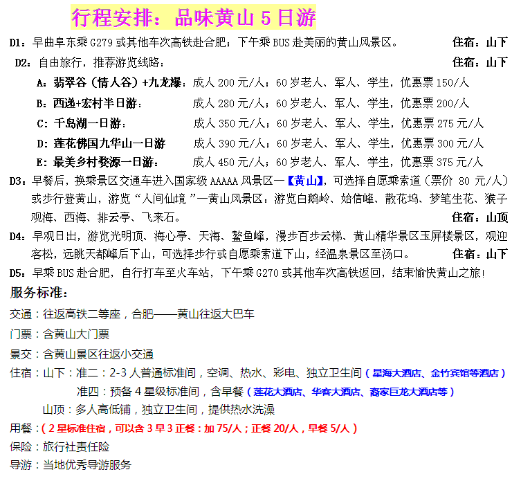 B線:品味黃山雙高五日游