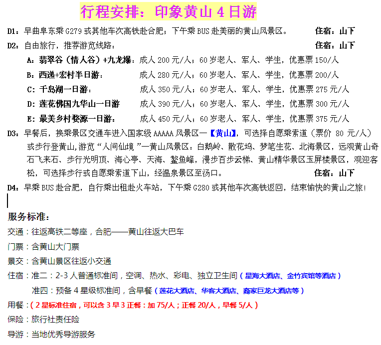 A線:印象黃山雙高四日游