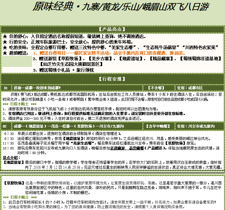 【原味經(jīng)典】九寨溝、黃龍、樂山、峨眉山雙飛8日游 2015-3-29 本文被閱讀 3904 次