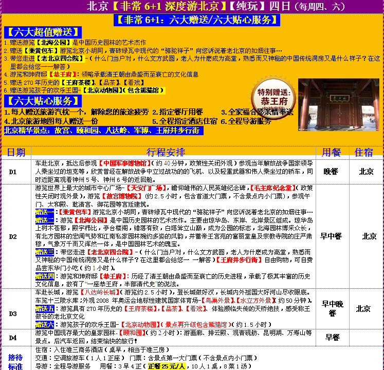 {非常6+1}深度游北京純玩四日游