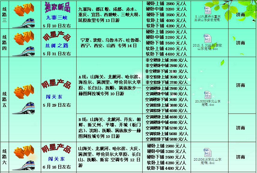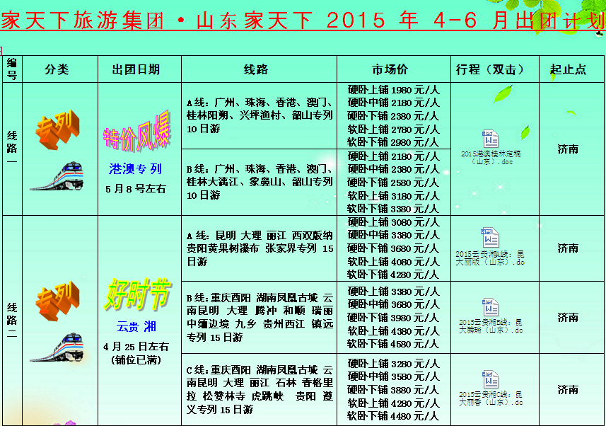 家天下旅游集團•;山東家天下2015年4-6月出團計劃