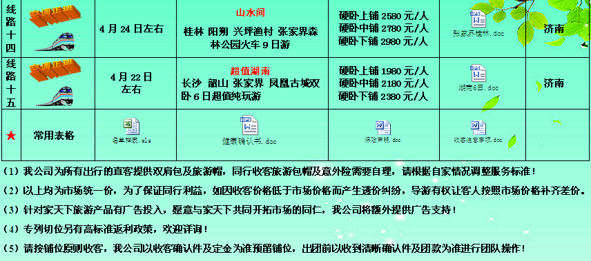 家天下旅游集團•;山東家天下2015年4-6月出團計劃 2015-4-8 本文被閱讀 4415 次