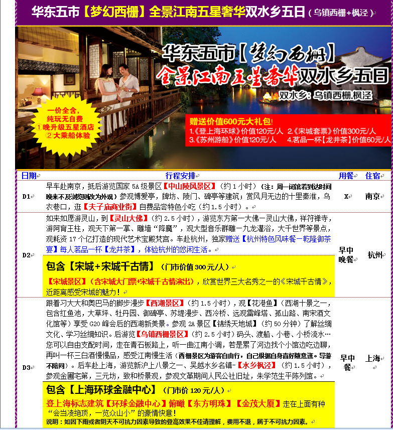 華東五市【夢(mèng)幻西柵】全景江南五星奢華雙水鄉(xiāng)五日