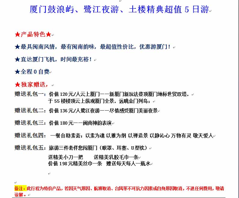 廈門鼓浪嶼、鷺江夜游、土樓精典超值5日游 2017-10-14 本文被閱讀 2747 次