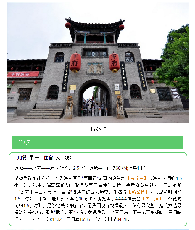 夕陽紅山西全景雙臥八日游