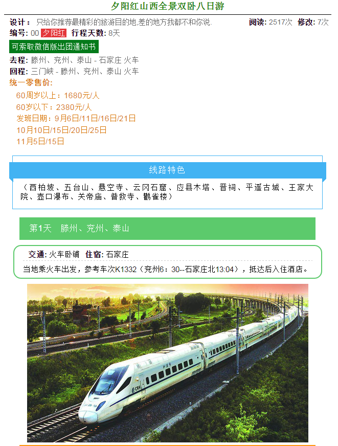 夕陽紅山西全景雙臥八日游 2017-10-14 本文被閱讀 3075 次