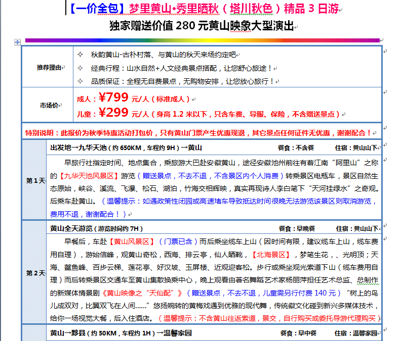 【一價全包】秋韻黃山•古韻西遞精品 3日游