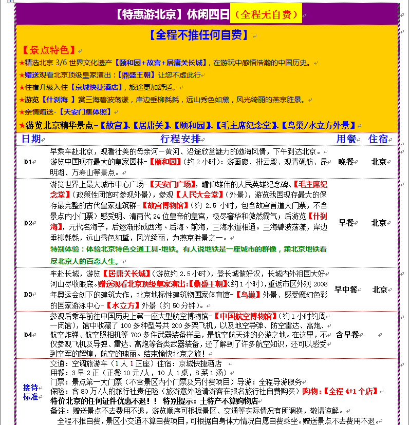【特惠游北京】休閑四日