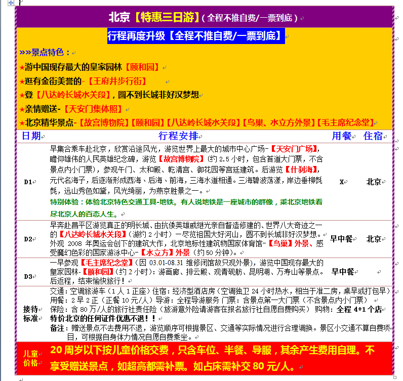 【特惠游北京】休閑三日游