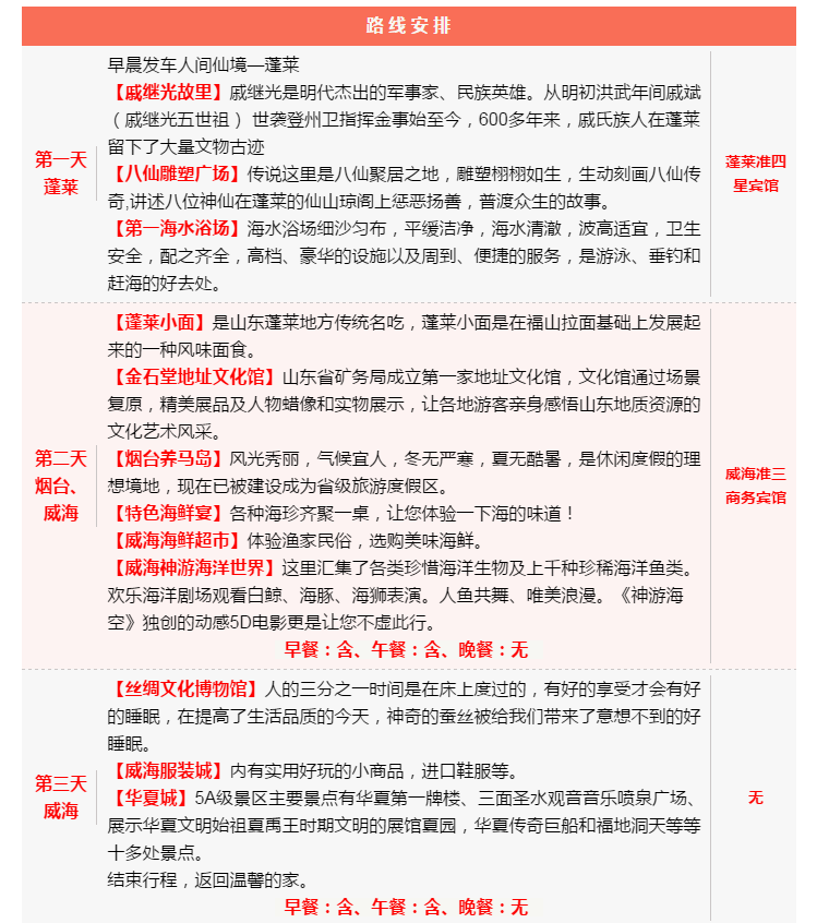 煙威蓬特價(jià)三日游(升級(jí)版)每周五發(fā)團(tuán)!365元一價(jià)全含、風(fēng)靡全城!