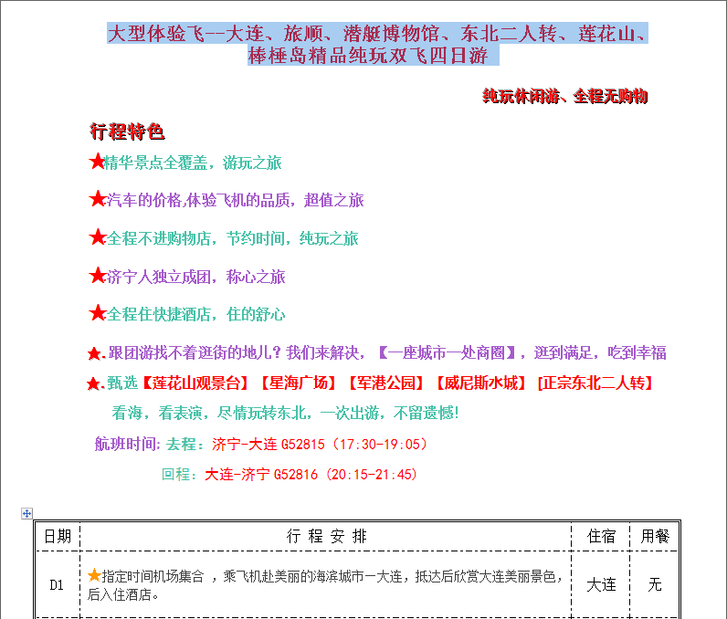 大型體驗飛--大連、旅順、潛艇博物館、東北二人轉(zhuǎn)、蓮花山、棒棰島精品純玩雙飛四日游