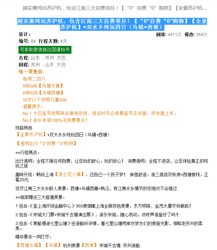 超實惠純玩蘇滬杭,包含江南三大自費項目!【“0”自費“0”購物】【全景蘇滬杭】+雙水鄉(xiāng)純玩四日(烏鎮(zhèn)+西塘) 2017-11-14 本文被閱讀 2813 次
