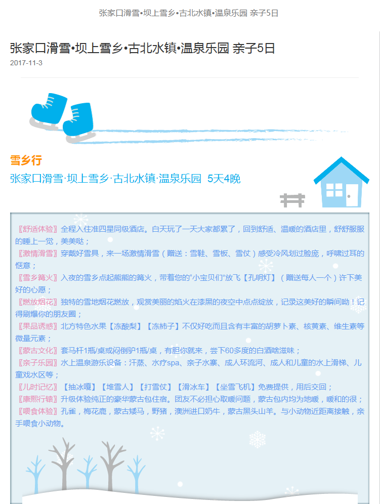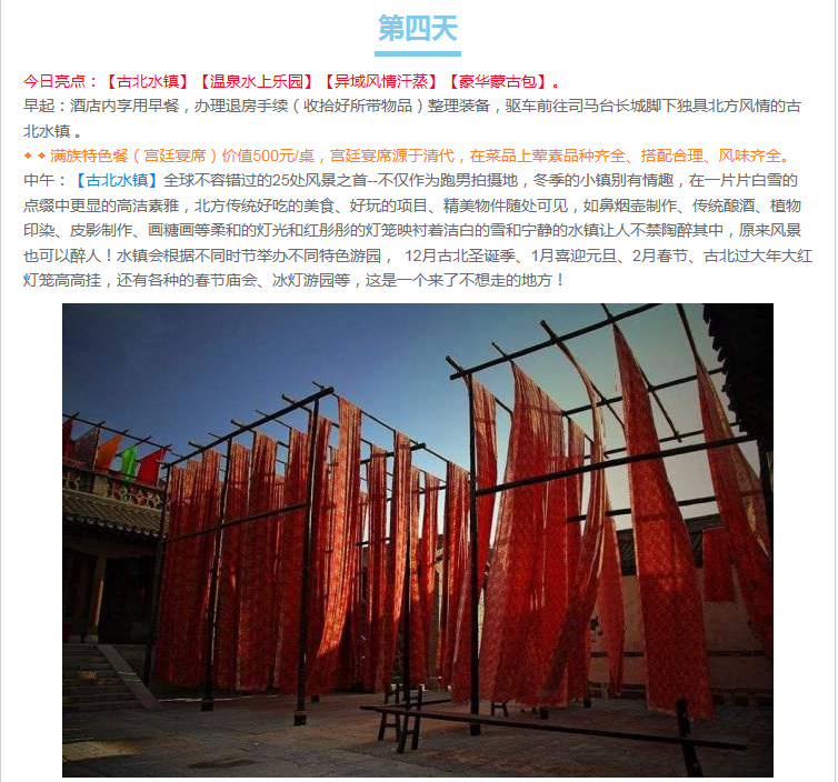 張家口滑雪•壩上雪鄉(xiāng)•古北水鎮(zhèn)•溫泉樂園 親子5日 2017-11-15 本文被閱讀 2564 次